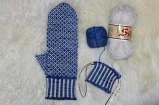 Jeg er så heldig at jeg har fått tak på en gammel finsk bok "Sata Kansanomaista Kuviokudinmallia" av Eeva Haavisto. Den er på finsk, men det gjør ikke så mye fordi det er vottediagrammene som er interessante. Disse vottene er N:o 95, Kotka. Jeg har tenkt speilvende mønsteret på vott nr 2.